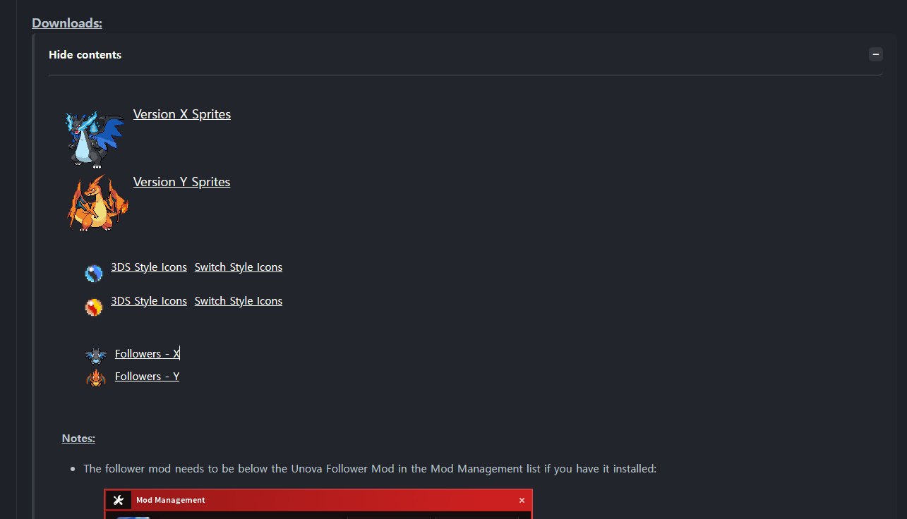메가진화 스프라이트 모드 소야 0 5 0 0 10.14 22:34 요로코롬 메가진화처럼 보이게 하는 모드라네요첨부한 링크 타고 가셔서다운로드를 클릭하시면 순서대로 x버전 y버전 스트라이트구요아래는 x버전 y버전 아이콘이며,그 아래는 따라오는 포켓몬 x버전과 y버전 입니다.취향에 맞게 다운받으시면 되겠습니다. 0 0 Author 0 0 Lv.10 소야 상록숲 174 (42.8%) 등록된 서명이 없습니다.